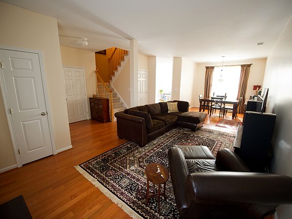 With 9 foot ceilings on the main floor and tall windows throughout, you're sure to get plenty of natural light in this East Facing home. The large Eat-In Kitchen with 42 inch cabinets & stainless steel appliances, overlooks your own extended 20x15 custom paver stone patio. Red Oak Hardwood floors span the Living/Dining Room creating an elegant space for entertaining. The upstairs carpets comprise of Zegna Pinstripe Designer Carpet in the Master Bedroom and Rich Life Luxury Carpet Padding throughout. The Laundry-Room is conveniently located on the second floor. The attic has pull down stairs for added storage space. The garage has custom shelves and a workbench for weekend projects. Ideally located near all major highways, public transportation and shopping venues. Priced to sell; don't let this beautifully maintained 3 bedroom/2.5 bath townhouse pass you by.