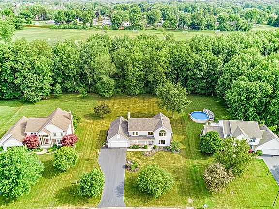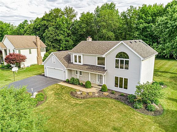 If you're looking for an EXCEPTIONALLY maintained home in a PREMIERE Chili neighborhood - this is IT! This LIGHT and BRIGHT colonial features an AWESOME 2 story entry and foyer! The SPACIOUS floor plan offers a large eat in QUARTZ kitchen w/center island, formal din rm, living rm AND fireplaced family room - all with GLEAMING hardwood floors! Enjoy convenient 1st floor laundry, BIG bedrooms & a DELUXE owner's SUITE w/jacuzzi tub, shower, walk in closet, cathedral ceiling & CUSTOM windows! ALL the mechanics are SOLID & the garage is 770 sf (4 car!) w/center drain & utility tub! PRIDE of ownership is OBVIOUS here w/TONS of landscaping, including a GORGEOUS raised paver patio & .55 acre lot backing to woods! Located in an area of ESTATE sized homes, low traffic & close to everything! The actual sq ft is off the building plans at 2349sf. Any offers to be reviewed after 12PM TUES 6/29/2021