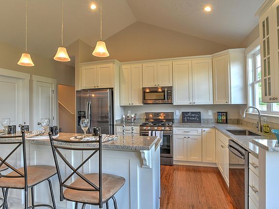 Beautiful High Quality New Construction in a Desirable Upscale Neighborhood. Featuring 9' Ceilings, Open Floor Plan, Custom Designed Kitchen w/Elegant Shaker Cabinets, Premium Kashmir White Granite Counters, Eat-At Bar, & The Latest Fashion Trend w/Black Stainless Appliances, Chestnut-Colored Bamboo Floors Provide a Warm Tone Throughout Main Living Areas & the Gas Fireplace is a Great-Room Centerpiece, Split Bedroom Design, Custom Tiled Shower in Mstr & A Large Back Deck- Great for Entertaining