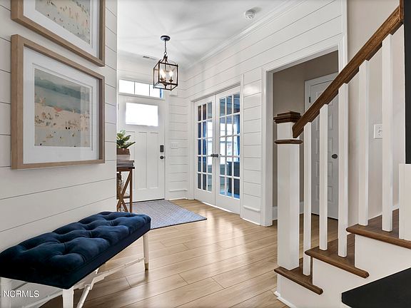 The Entryway sets the tone w/floor to ceiling Shiplapped Walls, leading you into the bright & airy heart of the home where Upgraded Luxury Vinyl Plank Flooring, 4 inch baseboards, crown molding, upgraded light fixtures & recessed lighting run throughout.