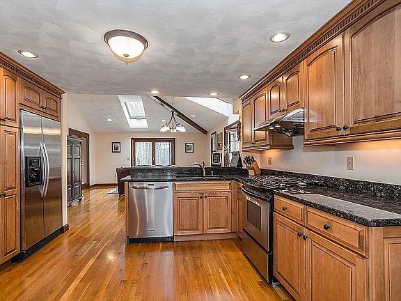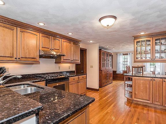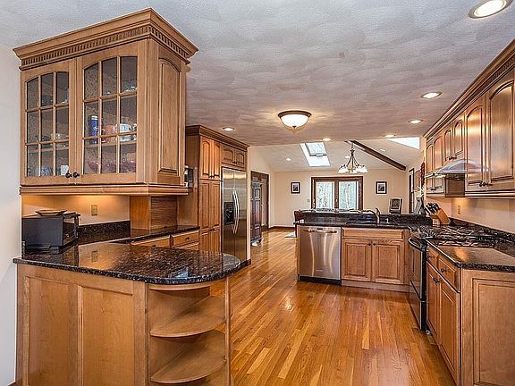 Beautiful quality Hicks built home located in a very desirable neighborhood, set on a stunning acre abutting conservation land. . Fall in love with the updated , granite , stainless, expanded open concept kitchen / eating area/ sitting room that includes a gas stove. Outdoor living at its best with a view of picturesque lot, oversized deck & hot tub. Enjoy your summer cookouts using the grill hooked up to town gas. Stunning huge cathedral 3 season porch with wood floors, full windows and screens. Front to back gas fireplaced living room. Full bath on the first and second floor. Finished family room in the basement complete with gas fireplace, daylight windows, new carpeting and a walk out . Other updates include heating and ac units , 200 amp electrical panel. Continuous Navien Hot Water. Cedar closet in the basement . Bonus... gas plumbed for generator on the chimney side of the house. Book your showing today!