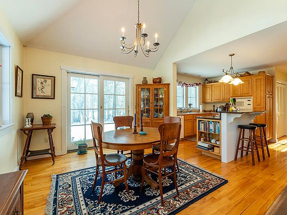 Set on 3.5 private acres, this home offers a first-floor primary suite, a vaulted living room with a fireplace, and expansive windows that frame the picturesque landscape. A first-floor office with an exterior entrance and half bath provides an ideal work-from-home space. Upstairs, two additional bedrooms and a full bath offer comfortable accommodations including an additional light filled room with a sweet terrace that looks out on the front of the property. A wraparound deck extends the living space outdoors, perfect for relaxing or entertaining while enjoying the peaceful surroundings.