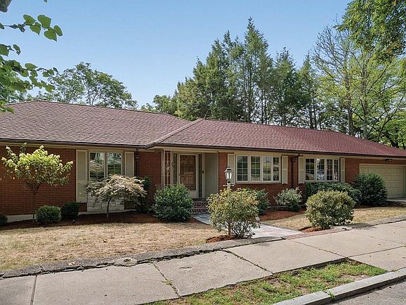 Set on a lovely corner lot, this Frank Lloyd Wright-inspired custom-built Ranch-style residence offers over 2,400 square feet of living space (including finished lower level) with nine rooms and three bathrooms. The interior is adorned with architectural detail typical of that period. With convenient one-floor living, features include an updated kitchen leading to a spacious deck with mature trees for privacy, an expansive living/dining room with a vaulted ceiling, and a wonderful family room with a fireplace and a skylight. There are three bedrooms, one of which is the primary bedroom with a bathroom. Other highlights include a finished lower level with three rooms, updated heating and central air-conditioning systems, an attached garage, and a level yard. This is an excellent location near Arnold Arboretum, Lars Anderson, Longwood Medical Area, and all the trending shops and restaurants along Centre Street.