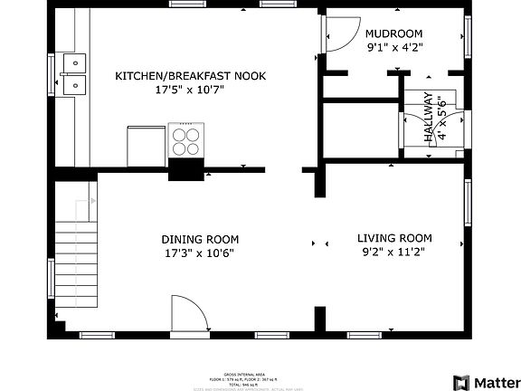 - Total interior livable area: 946 sqft