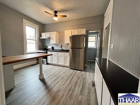 Cute and cozy, 1BR/1BA cottage located on the east side of Vigo County! Located just north of US 40 and near Rose-Hulman, this cottage offers tons of potential to the empty nester, investor, or first time buyer! Recent updates include: All new plumbing and electric, flooring throughout, complete new bathroom, stainless appliances, and paint throughout. Call/text a local agent to find out more or schedule a tour!