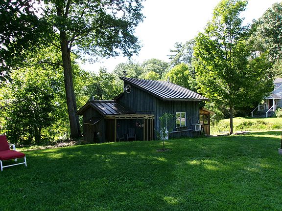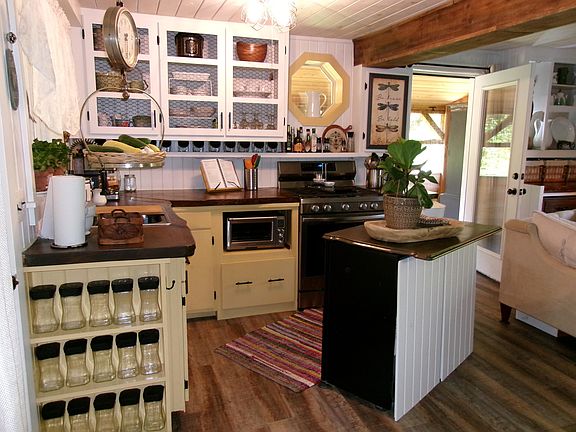 Welcoming Home high on a hill. Mountain views. Maintenance free, everything is neat, clean and in place. Walk into your dining area/ enclosed side porch, walls of windows. Step up to farmhouse style interior, nooks and built-ins, beams. Country kitchen, live edge counters, gas stove, shelves and plenty of cabinets, island. Brick hearth and potbelly stove in the living room also a heat pump for extra heating and cooling. Another enclosed porch off the front of this adorable home. Full bath with laundry. Over size tiled rain shower. Upstairs is the bedroom that has plenty of closet space, Rustic walls, queen bed, desk, side tables and more built-ins. This contemporary home situated on a double .90 lot, is on a dead-end street. Greenhouse, garden sheds, and one car garage. Lilacs, Blueberries, Flowers galore. Walking distance to shopping, the town gazebo, library, Androscoggin River and an 18-mile walking trail. Close to Farmington, Lewiston, Auburn and Augusta. Affordable with all you will ever need. Time to downsize.