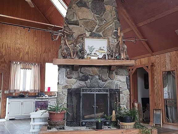 This very unique 3 bedroom contemporary home located on 22 acres in Stafford. The great room/dining room/kitchen is 33 x 22 feet and has a gorgeous stone fireplace with all the stone coming from the property. Built-in entertainment center. Built-in bar for entertaining. A built-in breakfast counter. All the wood from this home comes from the property. Home has radiant heating which is powered by a wood furnace which can also use oil. The kitchen and dining areas have tile floors. The kitchen has a stove, dishwasher, refrigerator and microwave. There is a 12 x 7 food pantry with shelving and additional counter space for cooking and entertaining. The dining area has a sliding glass door which overlooks the large 27 x 42 foot deck which is the home of the hot tub. Beautiful views in the back yard. There is an office area off the kitchen which is 8 x 7 feet with sufficient room for your in-home office. The master bedroom suite is 28 x 12 feet, has two walk-in closets, a sliding glass door which leads to the deck near the hot tub. The master bath features 2 closets, double sinks, a shower stall and a Jacuzzi tub. Home has central vacuum. The basement is large and has potential for a workshop, in-home business and so many other possibilities. The garage is an attached 3 bay garage with large doors for 2 bays. There is a ten thousand pound hydraulic lift with 12' ceiling comes with compressor also . with many possibilities for a workshop. There is a large outdoor wood furnace building. A covered bridge located near the goldfish pond. The owner has cleared an area on the property to allow you the opportunity to build a barn or install a riding ring. For more information or a private showing please call John