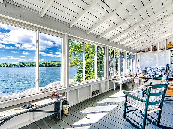 Classic Maine oceanside cottage. This original cottage offers dramatic views of Patten Bay, Union River Bay and the mountains of Acadia National Park as the backdrop. Beautiful outcroppings of ledge and sandy beach make it enjoyable for exploring. The glassed in porch offers views and a great spot to watch the sea life. The cottage offers 2- 3 bedrooms, two with views. The main floor provides a living dining area with wood burning fireplace. There is a large oversized garage where the laundry and a second shower are located. Plenty of storage above. The property lends itself to all types of activities including boating/sailing, kayaking, paddle boards or just savoring nature. The house is served by a two bedroom septic and a separate gray water system. House is being offered furnished and will include kayaks and canoe.