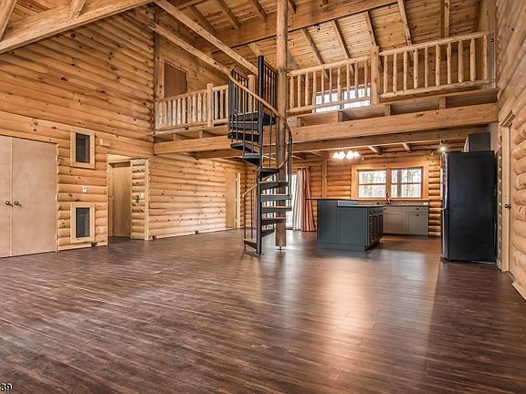 WOW! Unique Custom built 3605 sf sprawling log cabin Ranch w/ wraparound porch, open concept, contemporary flair, nestled on 1.41 acre level property backing to woods! Gorgeous wood beam ceilings, granite kitchen w/ Ultra Craft cabinetry, beautiful new baths, spiral staircase & elevator leads to 3 floors, custom closet organizers, full walkout basement plumbed for 3rd bathroom, new gas fireplace in family rm, lots of windows & natural light, loft overlooks master bedroom suite & family rm, can be used as a recreation rm, office or play room. Updates in 2016 include new floors throughout, paved driveway, front & rear sidewalks, hwh, shed, gutters, fireplace, baths, kitchen & appliances. Come see this absolutely beautiful one-of-a-kind home before it's SOLD!!!
