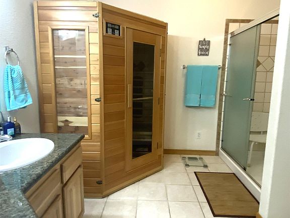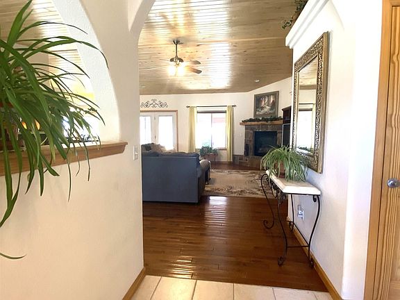This beautiful, log sided, one level home is nestled in Lakeview Estates which is a well sought after neighborhood because of its convenience to the core area, which includes shopping, restaurants, rec center, hospitals, and bike paths. This home has 4 bedrooms, 2 bathrooms, a separate dining area, a large living room with a gas fireplace and a spacious kitchen which has extra seating at the counter. The living room and kitchen has a beautiful aspen ceiling. As an added bonus, the main bathroom has a sauna. The home has 5 zones of in-floor heating that make it comfortable to be in any area of the home. There is a nice covered patio in the backyard for enjoying with friends and family and has peek-a-boo views of Pagosa Peak. The 3 car garage has plenty of room on the sides for storage and 2 extra lofts were built for plenty of extra storage space. The driveway has multiple parking spots, plus a gravel area for an RV or toys. There is a electric plug for the RV and a RV sewer dump/clean out. There is a well built 10x12 solid wood shed. The roof was replaced 2 years ago. The owners have installed an insta hot water heater. Most of the furniture is negotiable.