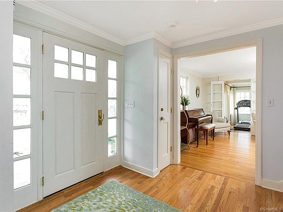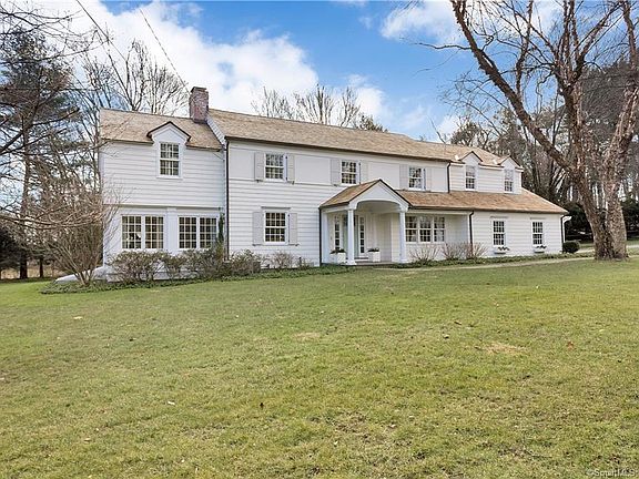 This sophisticated colonial allows everyone to spread out across ample private remote work, learning and workout areas. The main floor features an entrance hall, family room, eat-in kitchen, dining room, formal living room, a spectacular sunroom with coffered ceilings that doubles as an office and gym, a den/office with half bath or a private retreat for guests, and a mudroom. Up the backstairs from the kitchen find more coffered ceilings over a huge office/bonus room, a master bedroom with walk-through closet/dressing room, a full hallway bath and two additional bedrooms, including an en-suite. Take a break on the terrace running almost the full length of the house or step out the drive-through driveway for a walk or bike ride by Mather Meadows and Stephen Mather Homestead, which hosts yoga classes and events. This bucolic setting offers convenience with New Canaan and Darien's train stations and downtowns only minutes away, as well as easy access to I-95 and the Merritt. This IS an incredible value, and it's the one you've been waiting for!