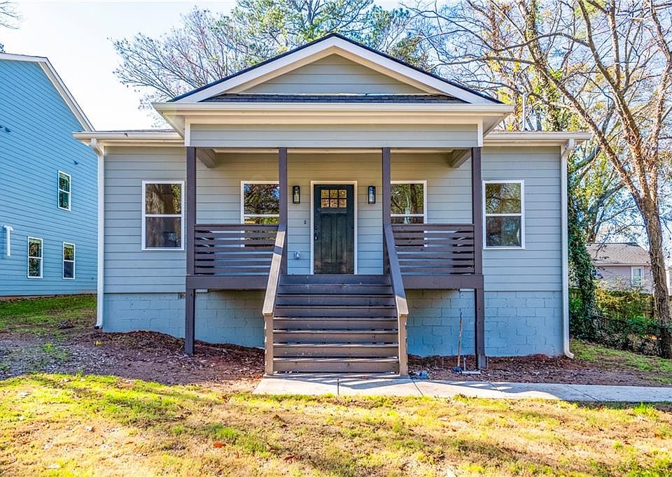* * * HUGE PRICE IMPROVEMENT - PLUS, Seller Incentive: $5K Towards Buyer Closing Costs if closed by April 30, 2024* * * Built from the ground up, this gorgeous new one-story bungalow in popular Lakewood Heights awaits its lucky new owners. From its covered rocking chair front porch, to its attractive interior finishes, this home is a must see! At the entry is a large open living space, featuring gleaming hardwood floors with a cozy fireplace as the focal point - the perfect setting for entertaining friends and family. With a direct view to the family room, the beautiful kitchen features white shaker-style cabinetry complemented by black quartz countertops, a huge dine-around island, designer quality subway tile backsplash, and a spacious pantry closet. A brand new 4-piece stainless steel appliance package, including refrigerator, range, microwave, and a dishwasher, will be installed prior to closing. This beautiful home is designed with soaring 10-foot ceilings and 3 spacious bedrooms, all with ensuite bathrooms equipped with quartz covered vanities, ceramic tile flooring, ceramic and marble tiled walls, premium faucet hardware, and rainfall showerheads in the owner's and one secondary bathroom. The owner's suite also has a private entrance door with direct access to the back deck. To top it all off, there is no HOA and the home is centrally located near Lakewood Amphitheatre, EUE/Screen Gems Studios, Tyler Perry Studios, Hartsfield-Jackson International Airport, downtown Atlanta, shopping, dining and highways. * * Note - this home has been virtually staged.