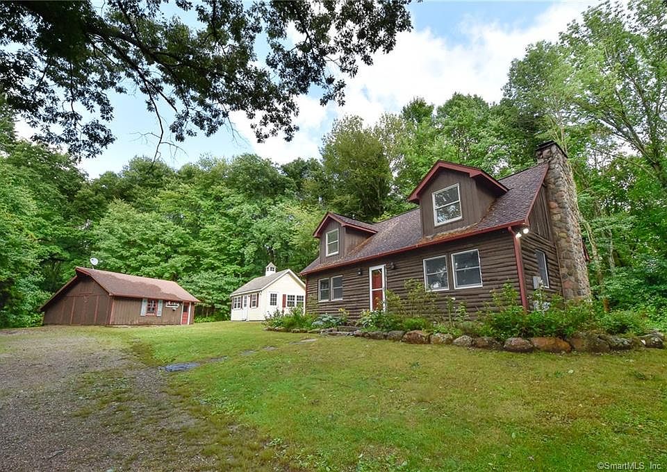Tucked away from it all but just a short distance to everything Set on nearly 3 acres this Log Cabin home has a storybook setting with beautiful gardens and wildlife. Expansive front to back living room features rustic pine floors and a big stone fireplace with a wood-stove insert. There is a full bath on the 1st and 2nd floors along with a roomy dining room and kitchen. Detached 2-car garage and a "she shed" that has so much potential with a little imagination. There is no better place to social distance than this GEM