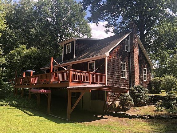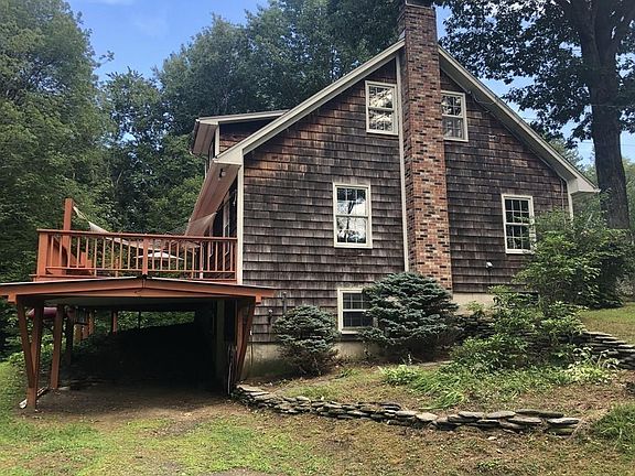 Only 5 minutes from the village of Shelburne Falls is a 3 bedroom, 1.5 bath Cape set back from the road on a beautiful 2.5 acres. The large wrap around deck provides many areas to either relax or entertain. Entering the house you immediately notice the wide oak-pegged hardwood floors that lead from the dining room into the living room. The kitchen is nicely connected to the first floor dining and living areas with lots of cabinets, counter space, a breakfast bar, and closet for the washer and dryer. The main level is filled with natural light from the large picture window, bay window, and sliding door onto the deck. Adding to convenience is a first floor Master bedroom with full bathroom. Upstairs are an additional 2 large bedrooms each with double walk-in closets. A bathroom on the second floor separates the bedrooms and has a linen closet. In the walk out basement there is a finished bonus room with a large closet and separate heat zone. A carport and shed are also on the property.