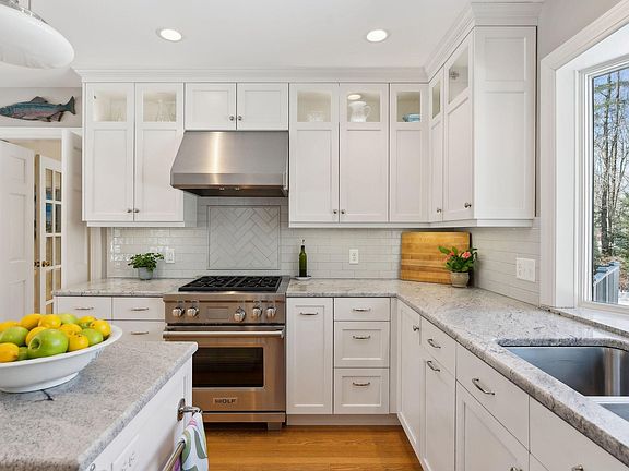 Offered for the first time, this thoughtfully designed 4-bedroom, 3-bathroom shingled colonial embodies New England vernacular with custom details and modern updates throughout. Located on Stonecrest, the first street developed in this highly sought-after neighborhood, this 3-acre lot is one of the premier parcels. Winding past ancient oak trees and stone walls along a ridge above the Presumpscot River, the entrance to the neighborhood creates a true sense of place, revealing the home nestled on its sun-soaked, south-facing site surrounded by exquisite gardens. Entering through the grand two-story foyer, the home's thoughtful layout is immediately evident, with each room flowing seamlessly into the next. Large windows allow abundant natural light. The gracious front-to-back living room features a wood-burning fireplace and access to a screened porch, surrounded by lush landscaping. The intimate dining room leads to the updated kitchen and adjacent family room with a woodstove, creating an ideal space for cooking and entertaining. The kitchen boasts honed granite countertops, bespoke cabinetry, and high-end appliances, including a Wolf range and SubZero refrigerator. The space connects to a mudroom off the 2-car garage, with a full bath and laundry at the base of the back staircase.