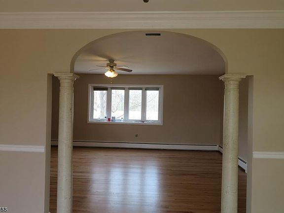 Lovely & Spacious Freshly Painted 3BR 2 bath home featuring an inviting light and bright 20 x 15 Living room, 14x13 formal ornate dining room w/crown moldings, columns and walk-out to elevated deck. Modern eat in kitchen w/ vaulted ceilings, center Island and new appliances. New Bathroom, Master BR offers recessed lighting, high ceilings and private master bathroom. Refinished hardwood floors throughout. Laundry hook up, Central Air, 2 car garage, Fenced in Yard. Nonsmoking environment, One small dog OK. Heat and Hot Water Included. Landlord will take care of lawn maintenance and snow removal. Hurry B4 its Gone!