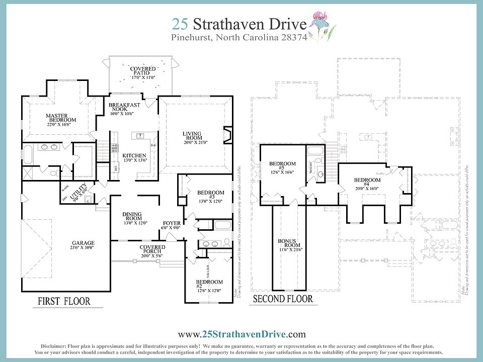 - Rooms: Bonus, Bedroom 5, Utility/Laundry, Kitchen, Bedroom 2, Bedroom 3, Carolina Room, Master Bedroom, Bedroom 4, Living Room