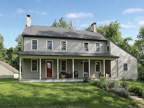 Come & experience Swallow's End, a meticulously restored vintage farmhouse perched on a hill outside of Lambertville, N.J. surrounded by 600 acres of preserved farmland & wooded public watershed lands. If you want total privacy with a brisk walk to town, this home delivers. Enjoy views of fields & woods in all directions from your large, covered front porch. Extensive hiking trails are adjacent to the property. Totally restored in 1994, the farmhouse retains many of its original finishes & period details including wide plank pine floors, exposed wood beams, period hardware plus 4 working fireplaces flanked by raised paneling & cupboards. Updated kitchen with marble counter, subway tile backsplash, new stainless appliances. The 1st floor has 2 living areas with fireplaces, a dining room with FP, a spacious open kitchen with FP & a brick bee hive oven plus 4 bedrooms & a den upstairs. With a 3 car Quaker shed & outbuildings for your Rhode Island Reds or Rom-neys' sheep, this lovingly restored home is Town and County living at it's best. Classic & pure. A rare find!