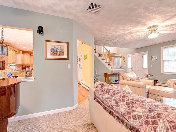 Move right into this incredibly well-maintained 3 bedroom colonial home! As you enter through the front door, you are welcomed into an expansive two-story foyer. To the right, you will find a front-to-back living room with large windows overlooking both the front and back yard. The eat-in-kitchen is equipped with a large center island, is fully applianced, and provides access to the large back deck and private back yard through a glass sliding door. The formal dining room offers seating for 10+ guests. The first floor also has a half bath, with first floor laundry. The second floor offers 2 well-proportioned bedrooms, a full bath, and ample closet space. The master suite has 2 large closets, and an en-suite bathroom. The basement provides ample storage space, and a 2-car garage. The large back deck overlooks the 1+ acre, private, tree-lined yard. This home also features central-air, a sprinkler system, and is move-in ready! Great location, close to Franklin Commuter Rail, 495, and 146.