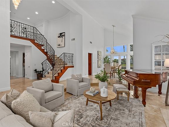 Welcome to the luxurious and exclusive guard-gated community of Coto de Caza! This premium 5-bedroom, 4.5-bathroom home with panoramic views offers a spacious, open floor plan with vaulted ceilings and travertine flooring. The stunning entry leads to a grand living room with a fireplace and an abundance of natural light. The kitchen features stainless-steel appliances, granite countertops, a large center island, and a dining area that overlooks the backyard and pool. Between the family room and kitchen, you'll find a wet bar equipped with a sink and bar stools.The downstairs bedroom, currently used as an office, has double doors and an en-suite bathroom. The luxurious upstairs primary bedroom offers views of the Coto hills and features a retreat seating area with a fireplace, a primary bath with travertine floors, walk-in shower, large soaking tub, dual sink vanity, and an additional makeup vanity. You will find three additional spacious bedrooms upstairs, including one with an en-suite bathroom for added convenience. The entertainer's backyard boasts a large pool, spa, and built-in BBQ. A spacious grassy area provides plenty of room for outdoor dining and play. Enjoy access to the world-class amenities of the Coto de Caza Golf and Racquet Club (optional memberships available), equestrian facilities, hiking trails, and more. With its unparalleled combination of sophistication, comfort, and outdoor living, this home is truly a rare find.