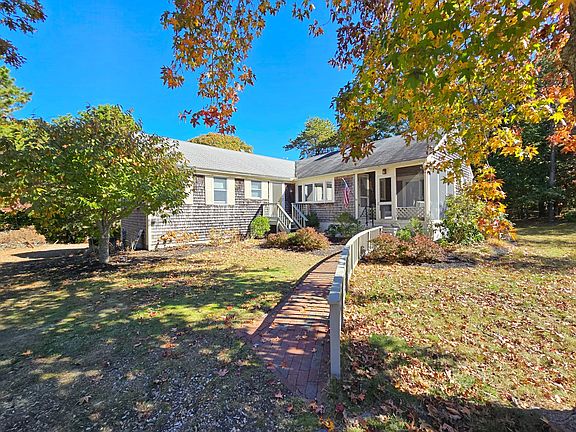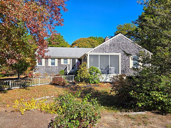 This charming, year-round and quintessentially Cape Cod home occupies a spacious corner lot on aptly named Sundown Lane. Barely 4/10 of a mile to South Sunken Meadow Beach on Cape Cod Bay, this comfortable cape-style ranch replete with vintage detail evokes memories of lengthy bygone summers governed by the tides. Gathering spaces include a living room with built-ins, V-groove paneling, gas fireplace and access to a classic screened porch with beadboard ceiling. There's a light-filled dining room with oak floors that adjoins the kitchen with its maple cabinets and butcher block island. A 2000 addition added significantly to the original cottage and includes a family room with access to the large rear deck, two bedrooms and a spacious full bath. The oversized primary bedroom has space for extra beds or a home office. The lower level includes a two car garage and a full basement with high efficiency gas utilities. The lot is nicely private with native landscaping. South Sunken Meadow is an easy stroll, a beautiful west-facing bay beach offering incomparable sunsets, warm water swimming and completely different experiences depending on the tide. Enjoy Cape Cod the way it used to be!