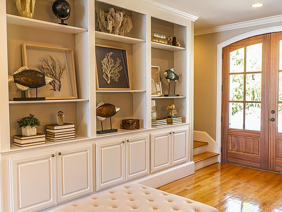 - Ceiling Fan(s), Wet Bar, Central Vacuum, High Ceilings, Built-Ins, Bookcases, Tray Ceiling(s), Wired for Sound, Office, Media Room, Ceiling Fan, Entertainment Center, Floors-Hardwood, Molding, Bonus-Finished, Bookcase, Wetbar