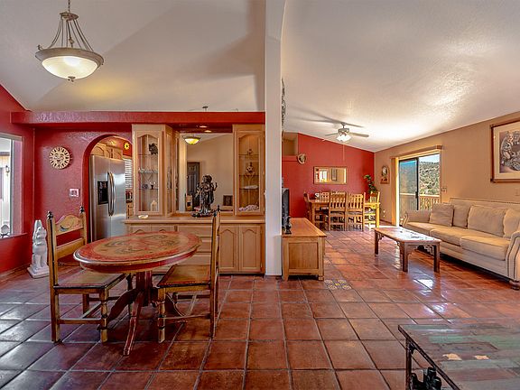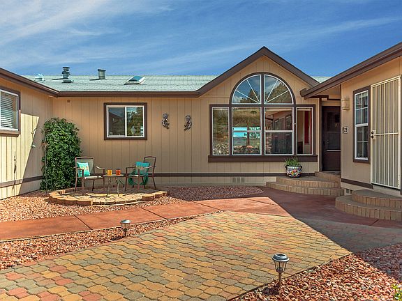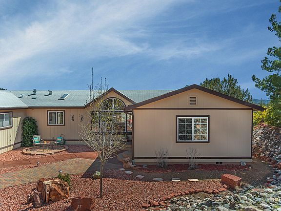 This beautiful Sedona home is on a private .3 acre lot overlooking national forest, red rocks, and stunning sunsets towards Mingus Mountain. From the 60 foot patio enjoy boundless views from your private spa that offers convenient access to the master retreat. The open floor plan highlighted by cathedral ceilings encompasses Sedona living at its finest. Satillo tile, stainless steel appliances, and butcher block island with vegetable sink makes the kitchen a chef's delight. Spacious master bedroom accompanied by two additional guest bedrooms in a split floorplan design. Located off of the master bedroom is a bonus office/hobby room with separate entrance from front courtyard. Appliances included and laundry room doubles as a mini kitchen with refrigerator, sink, countertop and cabinets.