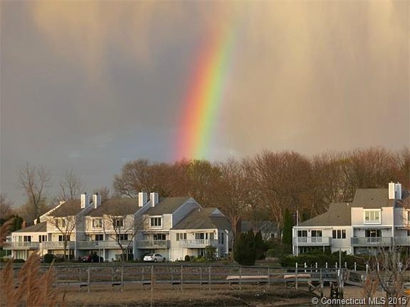 Gorgeous waterfront townhouse with deck overlooking Oyster River, marsh, and sunsets. Wake up to the sparkling waterfront views. Enjoy sunsets from your living room. Beautifully landscaped complex offers pool and marina with access to Long Island Sound. Attached garage, 2 spacious bedrooms with ensuite bathrooms. Finished lower level includes two more rooms. Close to beach, town park, town center shops and restaurants. Square footage includes lower level den and office/guest BR. New carpet installed in lower level, stairs, and second floor bedrooms.