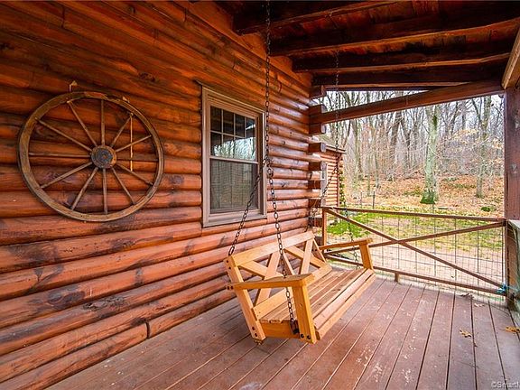 Over the Bridge and thru the woods to this home you go. Set on almost 6 acres of land. This beautiful LOG HOME is just waiting for you. The home features 3 Bedrooms, 2.5 Bathrooms, 1st floor laundry, open floor plan eat in Kitchen with granite counters, The Great Room has a stone fireplace and cathedral ceilings with exposed beams and lots of light. there is another Living room with a Fireplace that is currently being used as a 4th Bedroom. See yourself sitting on your porch swing listing to the nature sounds that surrounds you. The Garage/Barn (24X36) features a Large Stall and 2 smaller ones with electricity , there is Plenty of room to store all your trailers ect. in the spacious driveway. PLEASE DO NOT DRIVE DOWN DRIVEWAY WITHOUT A APPOINTMENT Thank you!