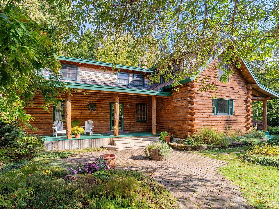 Lovely 3 bedroom log style home nestled into a 4.5 acre wooded lot with beautiful perennial gardens, a small pond and mature landscaping throughout. Located at the end of a private road, the property is perfectly positioned near Mount Desert Island, Acadia National Park as well as Ellsworth. The home has a new roof, an updated eat-in kitchen with granite countertops, spacious living room with bamboo flooring, cathedral ceilings, skylight and a wood stove to enjoy during winter months. First floor bedroom with two additional bedrooms and an open loft area on the upper level. Quiet country setting with two large porches, two car post and beam garage with storage above and over 4.5 acres to enjoy.