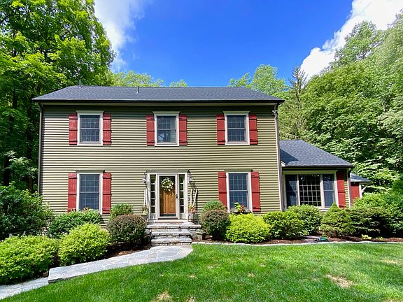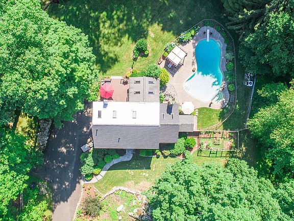 25 Tackora Trail is a true oasis that seamlessly blends privacy & proximity. Set well back from the street and across a lovely stream, discover a private getaway featuring an expansive lawn for backyard sports and large summer gatherings. Enjoy the inviting gunite pool with cabana, shaded game area with flagstone patio designed for bocci, horseshoes, and cornhole, a hammock and rustic firepit, large Trex deck with custom granite step and lighting, the property is built for fun and relaxation. The house features many custom updates, quality finishes and farmhouse style details - you must come see for yourself! Four bedrooms, a home office, luxe laundry room, wide pine soft-wood flooring and ample storage. The master suite is situated on the third floor with double walk-in closets, full bath with radiant heated floor, cedar closet and exposed beams. A truly flexible floor plan on the main living area - choose which way the rooms work for your family! Exposed beams, cathedral ceilings and wide-board pine floors add character and charm. Custom barn doors grace the family room; two fieldstone fireplaces make for cozy winter nights. The kitchen has WOW factor! Walk in and immediately notice the wall of windows and views of the property, cathedral ceiling and skylights make the room light and bright. When you want more to explore, open the split rail gate to your private access to Levy Park's trail 40+ acre trail system. Close to town, schools and a great commute location! Don't miss it!