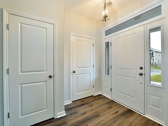 This five bedroom, three-and-one-half bath home has the master suite on the main floor! The Williamson features a gorgeous formal dining room with coffered ceiling that opens into the kitchen with a peninsula island, dark cabinetry with hardware, granite countertops, electric stainless steel appliances, and bar area for additional seating. Luxury vinyl plank flooring covers most living areas of the first floor from the foyer to the dining room and kitchen! The master suite has a walk-in closet, double sinks, granite countertop, separate water closet, separate garden tub and shower! The second floor has four additional bedrooms with walk-in closets, two full baths both with double sinks, a large laundry room with a folding counter, and a spacious loft. All that said, there is undoubtedly plenty of space in this home for everyone!!
