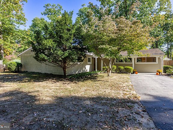 There is nothing as inviting and relaxing as a water view with a golf course along the water! This Oakwood Lakes ranch home is built on a wooded lot, backing to Oliphants Lake! Its' resort like setting is serene and peaceful in every way. Watch golfers tee off at Medford Village CC Golf Course's Hole #13 while relaxing on your private dock on the lake. Enjoy water activities, with the kayak and rowboat the owner is leaving at the property for you. Nature surrounds you here, whether you are outside or inside. And the style of this ranch home fits the vibes of nature. The lines of this mid Century home are stunning. The back wall of the spacious living room and the galley kitchen is ceiling to floor glass windows and doors, bringing that fantastic view into your home. The living room with it's vaulted ceiling and wood beams, features a wood burning brick fireplace with wood mantle and stone hearth. The natural elements compliment the breathtaking view. Gleaming solid hardwood floors greet you as you enter this home, and continue throughout the living room, hallway and all three bedrooms. The galley kitchen also has the view of the lake and so does the large formal dining room. Continue to the family room, with built in shelving and custom windows. There is plenty of closet space in this home, great for storage. However, a storage room for extra items is just off of the family room with access to the exterior. Or if you prefer, the storage room can be used as an office. This home is set far back from the road, with a long driveway and a turn around, maximizing the serenity and stunning elements of the lake location. A two vehicle carport is also available. There is an attic with an access panel and this home has a large crawl space. A sturdy seawall borders the lake along the property. Besides your private access to the lake, this Oakwood Lakes property has an annual HOA fee of $300, for the pleasure of using the Colony Club, which offers additional recreational amenities for the homeowners. For your pleasure, the Colony Club offers a beach, volleyball court, tennis courts, playground and a picnic grove with grills and picnic tables along the lake. Also, the Colony Club has a dock and in July and August, a lifeguard is on duty. The Colony Club is managed by the Oakwood Lakes Community Association.. Kayaks are also available for use with your membership. Living in this home, with this amazing location and access to the Colony Club is resort living in Medford! The home is being conveyed "as is", and the new owner can add their details to make it their own oasis. But you can't change that fabulous lakefront location!
