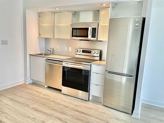 Bright, Clean, Spacious 1-Bedroom Plus Den With Balcony, Parking And Locker Included. Great Lake, Park & City Views. Brand New Wood Flooring, Brand New S.S. Appliances, Walls Freshly Painted. Aaa Amenities Inc 25-M Indoor Swimming Pool, Gym, Party Room, Movie Theatre, Garden Outdoor Barbecue, Guest Suite, Free Visitor Parking. 24Hr Concierge. Steps To Ttc, Sobeys Supermarket, Park, Rogers Centre, Cn Tower. Close To Urban Conveniences. Easy Highway Access.