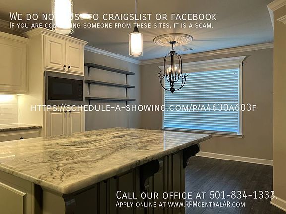 Real Property Management Central AR. 2018 built 4br 2ba with over 1700sq ft. Just outside Cabot. $1650 rent (separate $35/mo charge for resident benefits and insurance package. $1500 deposit and $150 admin fee. *Beware of ongoing scams on sites like facebook marketplace and craigslist where listings get copied and re-posted with incorrect information and the scammer posing as the home owner to try to get you to send them money directly. Check our website for accuracy. Features include: Kitchen open to living room, laminate floors in kitchen and living areas, granite counters, electric cooktop stove, over the range microwave, fridge, dishwasher, disposal, covered back patio, partially fenced back yard, 2 car garage, and more. 1 fully grown and house trained dog or cat (under 30lbs full grown) may be approved with $350 pet fee and $25/mo pet rent. Full video walk thru available from our website or by searching "25 Timber Ln, Austin AR" on youtube. No.Section.8.housing Requirements and qualifications can be reviewed before completing application. Each adult must complete a full and separate application. Application fee of $50/adult also paid on the website.