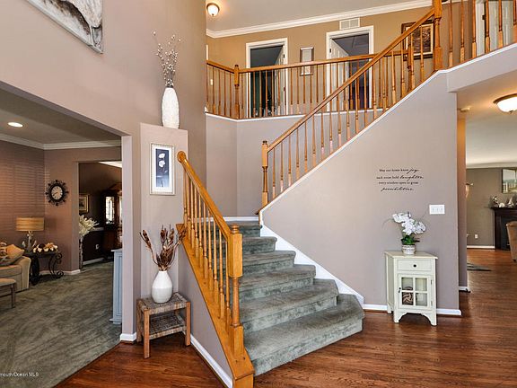 Victoria model in Berkeley Woods w/finished basement. The welcoming Grand Foyer w/turned staircase boasts over 3,200 sq. ft which includes the Finished Basement. Light, bright & airy w/lots of windows including bay & transom, several bump-out extensions allow for a huge family rm w/cozy gas fireplace. Hare Wood Floors and Crown Molding throughout the 1st floor. The Beautiful kitchen has 42" cabinets & GRANITE Counters, Center Island w/OPEN LAYOUT, perfect for Entertaining. A huge master suite w/cathedral ceiling, sitting area & bath w/whirlpool tub, shower, dual sinks & private commode room & Walk In Closet. 3 Large Bedrooms & Full Bath complete the 2nd Floor. Full Walk Out Basement w/2 large finished rms. All insulated including utility rm w/Ruud furnace, oversized NEW h/w heater