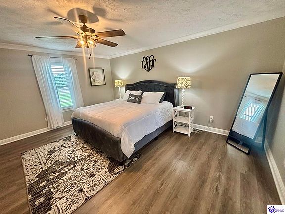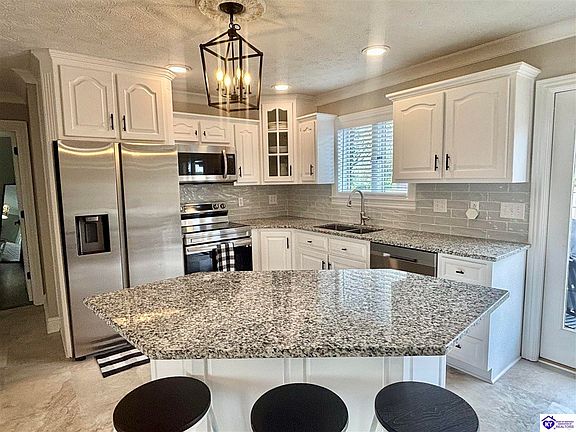 Home sweet home! Don’t miss this opportunity to own a stunning property! The gorgeous setting and beautifully updated home will captivate you. Upon entering, you’ll notice the elegant crown molding surrounding the room! The fireplace, complete with a TV above the mantle. The kitchen is a showstopper, boasting a beautifully appointed island with granite countertops and a stunning tile backsplash. The adjacent dining area is perfect for family meals. The master suite is a true retreat, featuring built-in shelving, a perfectly appointed bathroom with a double vanity, LED mirror which is antifog, and a spacious walk-in closet with custom shelving. The home’s elegance is further enhanced by beautiful floors throughout. A generously sized laundry room with included washer and dryer is an added bonus. The basement is a wow factor, currently configured as a large family room and bar area, complete with a custom bar island and TV that remains!! Additional features in basement include ample storage, a bedroom with two walk-in closets, an oversized bathroom, and a walk-up exit to back of property. The peaceful private backyard oasis boasts a hot tub, fire pit, and unattached two-car garage with additional storage. Located in the desirable Faulkner Place subdivision, this property offers easy access to town, shopping, the hospital, Campbellsville University, and restaurants. Don’t miss this unique property!