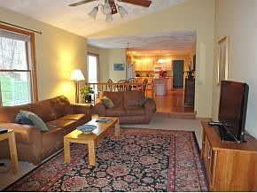 GORGEOUS MINT CONTEMPORARY.New laminate flooring from vaulted foyer throughout kitchen.Nice floor plan w/large living room which adjoins dining room.Comfortable family room w/fireplace. Incredible master BR w/fireplace & whirlpool tub in master bath.Beautifully landscaped on deep wooded lot.Pressure treated deck w/adjoining patio.Very Nice Home! Home Inspection available.