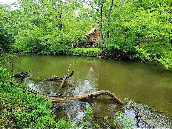 3 Bedroom, 2 Bath Cabin with 3.14 Acres on the Toccoa River with several hundred feet frontage.Master Bedroom on main level with soaring cathedral ceilings, fireplace in living area opens to spacious porches over looking level yard along Toccoa River frontage.Loft Bedroom upstairs and full, fully finished basement with 1 bath, another master bedroom, living area and washer and dryer.Terrific walking trails nearby.Excellent fishing, canoeing from this property. Plenty of room to build an additional cabin.