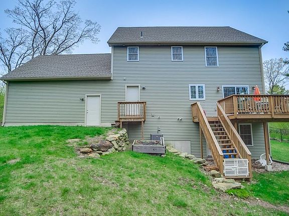 Peaceful wooded sanctuary at end of a cul-de-sac! Sophisticated styling in this nearly new family home with beautiful bamboo flooring throughout. Open floor plan for ease of entertaining. The great room with fireplace flows seamlessly into the dining room with its sliding door to deck overlooking fenced grounds and the woods beyond. Have fun preparing meals in the classy kitchen with its farmer's sink, loads of cabinets, quartz counters, wine fridge, stainless steel appliances, and center island w/barstools. Master bedroom offers a walk-in closet and tiled bath with double sinks and shower. Ready to finish bonus room/4th bedroom over the garage. Partially finished lower level walk-out has tremendous space for family fun. Convenient first-floor laundry. On-demand hot water heater. Whole house water filtration system. Minutes to Amherst and a short drive to the MA Pike. Showings start Saturday with an Open House Sunday from 1-2:30.