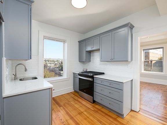 Modern kitchenCharming characterGenerously sized roomsLarge windowsNatural lightStainless steel appliancesBeautiful tile backsplash
