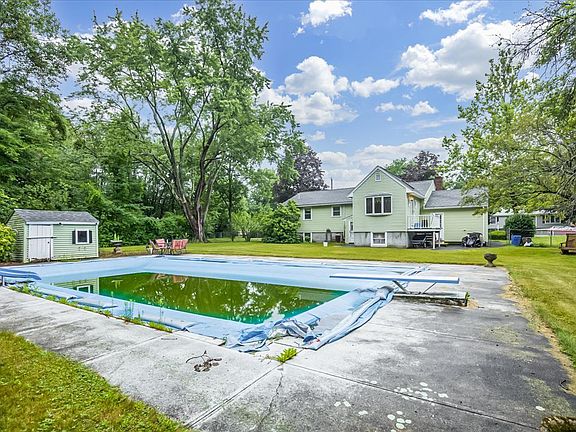 Pride of ownership reflects inside and out in this lovingly maintained ranch with legal inlaw. Step inside and you will fall in love the character and detail, family owned for over 50 years. Living room with fireplace and gleaming h/w floors thru out first level, cabinet packed kitchen with all appliances, breakfast bar and dining area. The sunroom is tongue and groove with beamed ceilings and sky lights that leads to deck and private fenced in back yard with inground pool. Three bedrooms and a full bath complete the first floor. The downstairs has finished family room with fireplace all new carpeting, freshly painted, bedroom, bathroom. kitchenette area, and utility room. A great place to call home! Great commuter location close to the Mass border. Open house Saturday July 17 from 12-3. All offers due by noon on Monday
