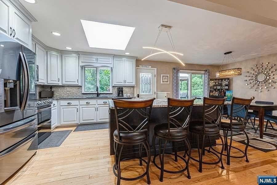 Light filled 4BR/3BA expanded and updated home in great neighborhood of Montvale features open floorplan perfect for entertaining. Updated kitchen with center island and skylight, granite countertops and blk SS appliances. Sliding door opens to large deck overlooking beautifully landscaped private fenced backyard with in-ground pool, hot tub and chic she-shed. Primary bedroom suite with whirlpool bath, skylight, 2 closets and a slider to the deck. Two additional BRs and updated full bath. Lower level includes family room, 4th BR and bath, laundry room, and access to oversized garage with workshop area and bonus room/gym. Whole house generator, sprinkler system, central AC and large driveway. Highly desirable school system, close to GSP and NYC transportation.