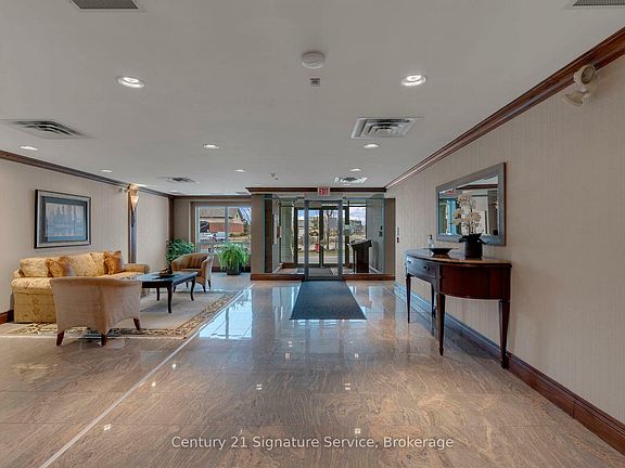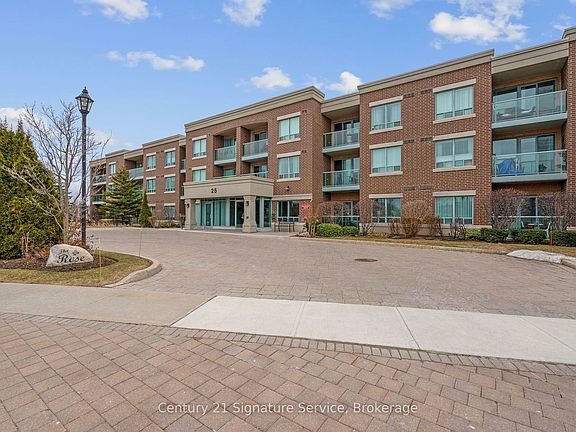 Welcome to Rosedale Village! This highly sought-after gated community, established in 2005, is beautifully maintained and offers an exceptional lifestyle with resort-style amenities. Enjoy a 9-hole executive golf course, a fully equipped gym, a party room, an activity room, and more. With 24-hour gated security, this is a safe and welcoming place to call home. This well-laid-out one-bedroom unit features an open-concept design, a modern kitchen with a breakfast bar, granite countertops, a stylish backsplash, and stainless steel appliances. Walk out to balcony with front facing views, carpet-free, it boasts laminate flooring throughout. The spacious primary bedroom includes a large walk-in closet . Convenience is key with maintenance fees covering lawn care, water, snow removal, and access to all amenities, including the clubhouse and golf course. Ideally located just steps from shopping, transit, schools, and major highways 410. Book your showing today!