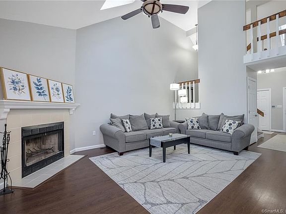 Location Rarely available end unit in the small desirable Vicki Lane complex New England charm at it's finest Tons of improvements including roof, skylights, Trex decking, furnace, hot water heater, patio, pavement, flooring, interior/exterior painting and gutters that are all paid off with NO current special assessments on this unit Located within walking distance to incredible amenities. Walk to the playgrounds, splash pad, RecPlex, golf course, tennis courts, basketball courts, fields & more. The interconnecting neighborhoods create the perfect environment to run, walk or bike ride. Ideal open floor plan in the kitchen/dining/living room, perfect for entertaining. Sellers have freshly painted the ENTIRE unit with a neutral palette, this home is move in ready This home features two bedrooms, one being a master suite with full bath. There is a second full bath on the upper level and a 1/2 bath on the main floor. Soaring ceilings, natural light & a beautiful dramatic central fireplace. Downstairs you will find an additional 638 square feet of living space, ideal for a gym, third bedroom, playroom, hobby room or office space. The lower level is loaded with closets featuring walk-ins, cedar and double doors. Back deck for grilling or walk out to your ground level patio. Clean efficient gas for heating, an attached garage, central air and public utilities. Colchester is known for it's strength in community & desirable central location in Connecticut Schedule your showing