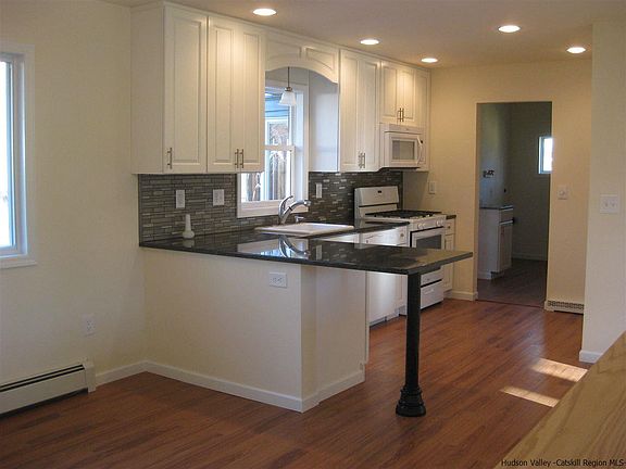 Not one thing to do... just move into this beautiful open floor plan home. This home has been totally updated. All new roof, siding, kitchen with granite counters and glass back-splash, all new appliances, walls with new insulation, new wiring and baseboard heat. All new bath, laundry area, all new garage doors. Ceramic tile floor entry, beautiful wood laminate flooring in open living room and dining and kitchen. This is a must see. Nice private rear yard open to woodsy area. Watch birds and wildlife from your dining room window. One floor living at its best. Move in and enjoy.... Just perfect!