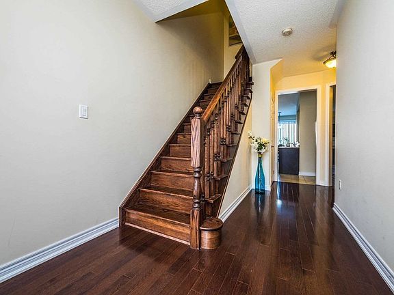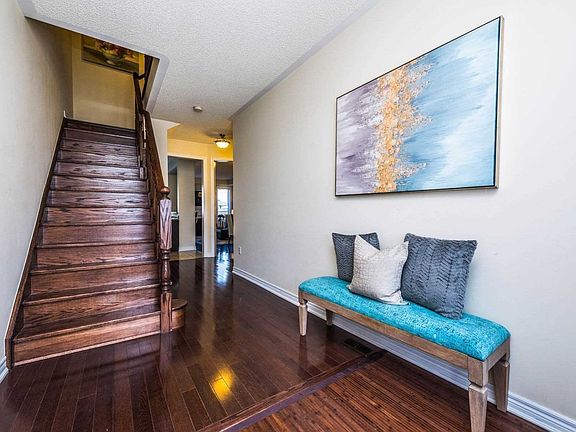 Beautiful 3 Bdrm/ 3 Bath Freehold Townhome Located In Sought After Southfields Village.Open Foyer, Bright & Spacious Home Features 9Ft Ceilings On Main,Open Concept Kitchen W/Breakfast Bar & Gas Fireplace,Dark Oak Hardwood Floor Throughout Main Floor With Hardwood Stairs.Second Floor Features King Sized Master With Huge Walk-In Closet & 4Pc Ensuite.Upstairs Laundry, 2 Other Large Bedrooms & Full Washroom.Home Under Tarion Warranty.Peace Of Mind For New Owners