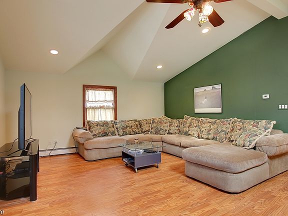 Expanded Custom Cape with 3 bedrooms on second level and a full bath on each level! Large addition great room with vaulted ceilings office area & 2 double closets. Walk into the living room with hardwood floors with inlay and gaze into the fireplace for those wintry nights. Dining room has continuation of inlay flooring. Kitchen with breakfast bar and eat in area open to sun room. 1 bedroom on 1st floor. Screened in porch off kitchen with sliding glass doors to deck. The lower level has rec room and office plus utility room with boiler, water softener, and hot water heater, plus laundry area. Over sized one car garage with opener and separate driveway, one of 2. Plenty of parking. Close to train and downtown Denville for shopping. Dead end street. Parking for 6 cars plus gravel area which holds 2.