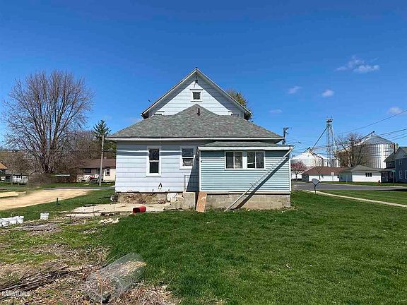 A covered front porch welcomes you to this 3-4 bedroom, 1.5 bath, 1.5 story home. The main level features a large living room that opens to the dining room. The kitchen has a functional U-shaped layout. The laundry room is in the rear of the home on this level. There is a full bathroom and an office. On the second level you will find 3 bedrooms and a 1/2 bathroom. There is a gravel drive for off street parking and a storage building in need of repair. Water softener does not work. This home is sold "AS-IS".