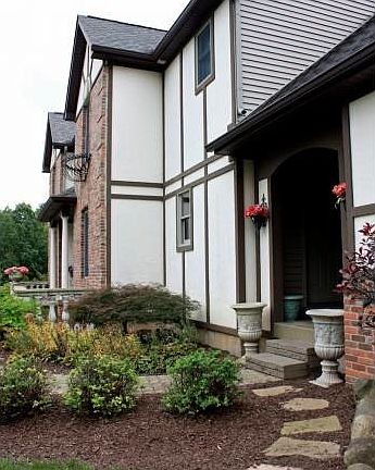 Soaring 2 level Great Room with floor-to-ceiling Stone Fireplace. Island kitchen with adjoining Breakfast Room; SS appliances, Dining Room and Front Sitting Room off 2-Story Foyer. Study w/private Deck, Master Suite w/Walk in closets, Jacuzzi Bath and private Shower. Walk-out Finished Bsmt w/ full Kitchen, full Bthrm and tons of entertaining space. Plenty of space for a barn; township will allow 2 horses on 5 acres!